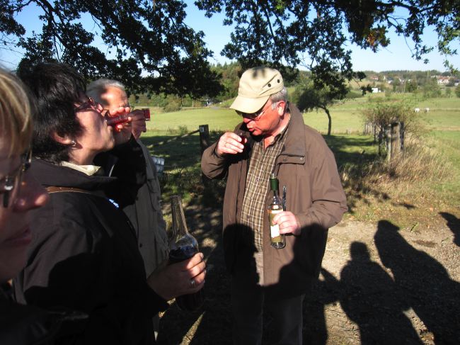 Nachdem alle versorgt sind, genehmigen sich auch die heutigen Wanderführer einen wohlverdienten Schluck.