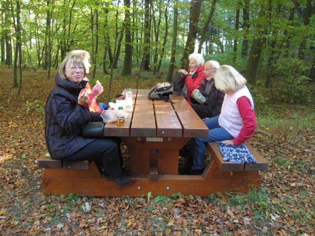 Endlich Mittagsrast. Die Ersten bekommen die besten Plätze an dem rustikalen Tisch.