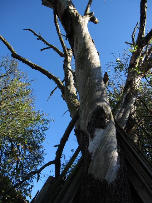 Dieser abgestorbene Birnbaum hat sich im Wortsinne in den Himmel geschraubt.
